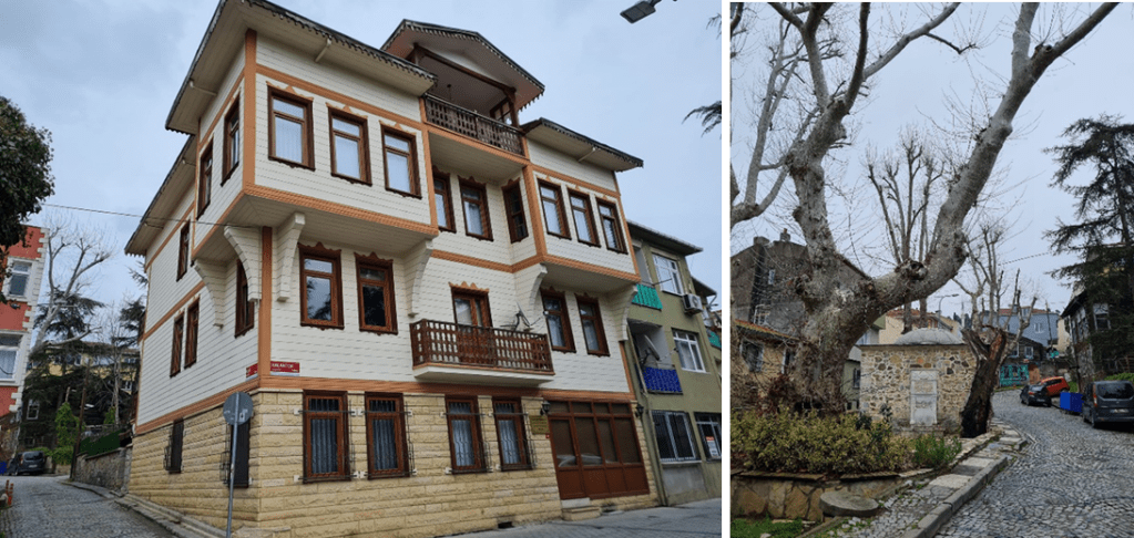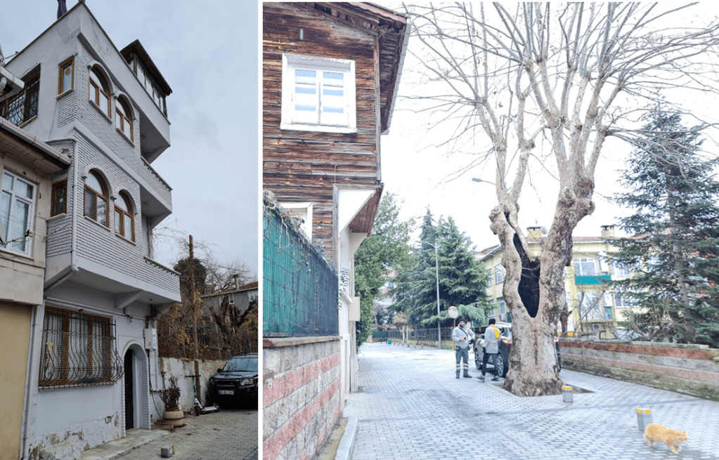 Soldaki fotoğraf benim bekar evi. Bir kat ilave edilmiş ve sokağa doğru çıkma yapılmış. Yeni pencereleri ise mescit havası veriyor. Sağdaki ise sokağın ortasındaki kalan ve muhtemelen hayatının onda birinde birlikte olduğumuz çınar.