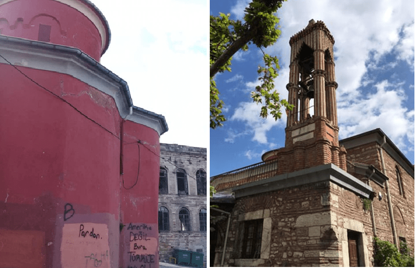 Halk arasında kanlı kilise olarak bilinen bu kilise gerek hikayesi gerekse İstanbul’da Osmanlı döneminde camiye çevrilmeyerek Rumların ibadetine bırakılmış Bizans döneminden kalma tek kilise olması nedeniyle en çok görmek istediğim mekanlardan biri idi. Ancak bırakın içini gezmeyi bu iğrenç yazılar içeren fotoğraf dışında başka fotoğraf bile çekemedim.