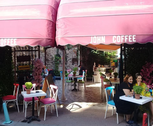 Epeyce yürüdük. Bir mola vermekte fayda var. Önce bir limonata. Sonra çay ve çikolatalı cheesecake. Yer seçimi konusunda önsezilerim hep iyidir. Yine öyle oldu. John Coffee’yi tek geçerim bundan böyle. Yalnız gelecek sefer limonata değil fotoğrafta limonatanın yanındaki yeşil renkliyi deneyeceğim.