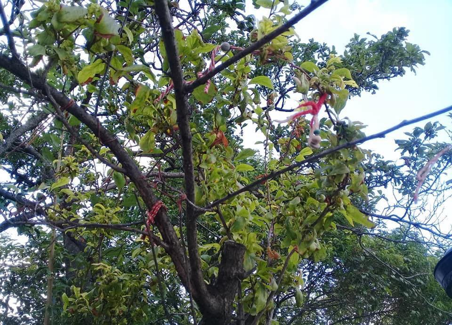Bu da kilisenin bahçesindeki dilek ağacı. Mart ayında kırmızı beyaz iplik ve boncuklarla hazırladıkları “Marteniçka” ları dilek tutarak ağaca bağlıyorlar. Gerisini ağaç hallediyor. Marttan bu yana hala birkaç tane kalmış ağaçta.