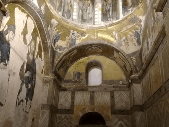 Manastır olarak yapılan bu mekânın ilk yapılışı 4.yy ile 5.yy olarak tahmin edilse de arkeolojik bulgular 12. yy dan başlıyor. Birçok yıkılma ve istilalarla zarar gören kilise kısmı, şu andaki son haline dönemin Bizans İmparatoru tarafından baş hazinedar görevine getirilen ve kilisenin kurucusu aristokrat Teodor Metokhites tarafından getirilmiş. Aynı zamanda büyük bir bilgin ve hümanist olan Metokhites tüm servetini manastırın tamirine harcamış. Tüm mozaik ve freskleri tasarlayıp dış koridor ve yan şapeli de yapıya eklenmiş. 16 yıl süren çalışmaların sonunda 1321 yılında tamamlanmış yapı. Metokhites, 13 Mart 1332 tarihinde öldüğünde kilisede kendisi için hazırlattığı mezar şapeline gömülmüş. Fatih’in İstanbul’u Fethinden 58 yıl sonra çan kulesinin olduğu kısma minare yapılarak camiye çevrilmiş. Ancak içerideki fresk ve mozaikler korunmuş. Müze olduktan sonra tek kubbeli kare şeklindeki ana hol, iç ve dış koridorlar ile yan şapel sergilenmekte. Ancak ne yazık ki ağırlıklı olarak mahşer gününü anlatan fresklerin bulunduğu ve narsist yanı da olan Metokhites’in resimlerinin de olduğu yan şapel restorasyon nedeniyle kapalı idi.