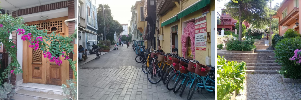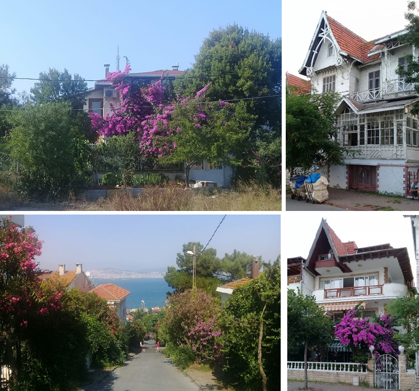Sırasıyla Manastır tepesinde huzur veren bir ev, Sirakyan ikiz evlerinden biri, begonvil ve zakkum dolu bir sokak ve modern ama ada mimarisine uygun bir konak.