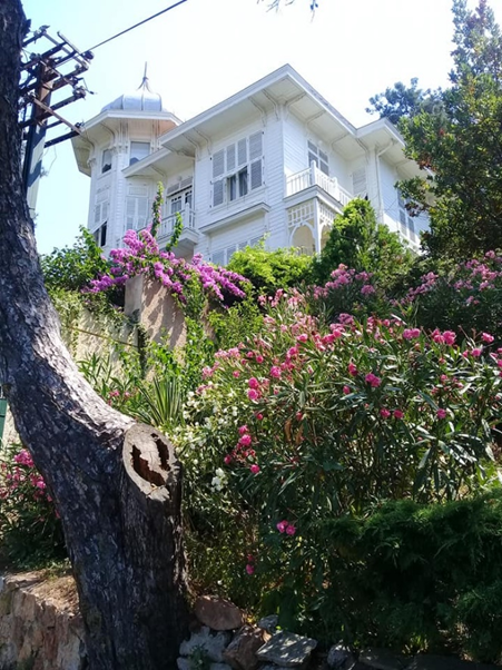 Cumhuriyet Döneminin önemli yazarlarından olan Hüseyin Rahmi Gürpınar (1864-1944) 1912 yılından itibaren ölünceye kadar bu evde yaşamış ve vefatının ardından da ev müzeye çevrilmiş. Müzede kendi yaptığı el işleri, özel eşyaları ve kitapları sergileniyormuş. Çok bakımsızdı. Oradan geçen bir ada sakini çok uzun süredir kapalı olduğunu söyledi. Uygun açı bulamadığım için Gürpınar’ın evinin resmini çekemedim ama en azından komşu köşkün fotoğrafını çekip koyayım istedim.