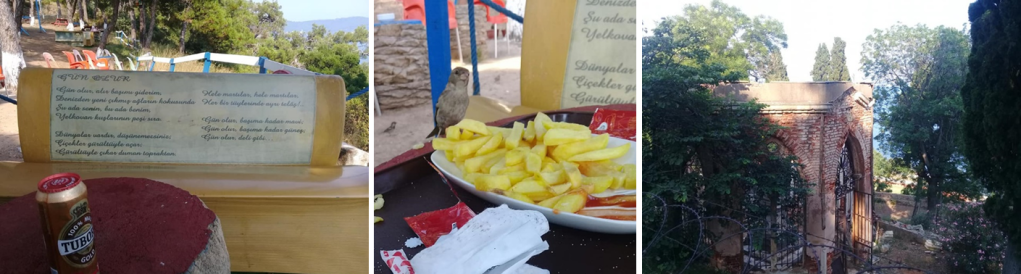 Ben hiçbirini yapmadım ama şahsen yokuştan sonra dinlenmek ve bu harika manzarayı bira içerek uzun uzun seyredebilmek için kilisenin yanındaki Aya Yorgi Kır Lokantası adlı restorana gitmeyi dilemiştim. Dileğim kabul oldu.