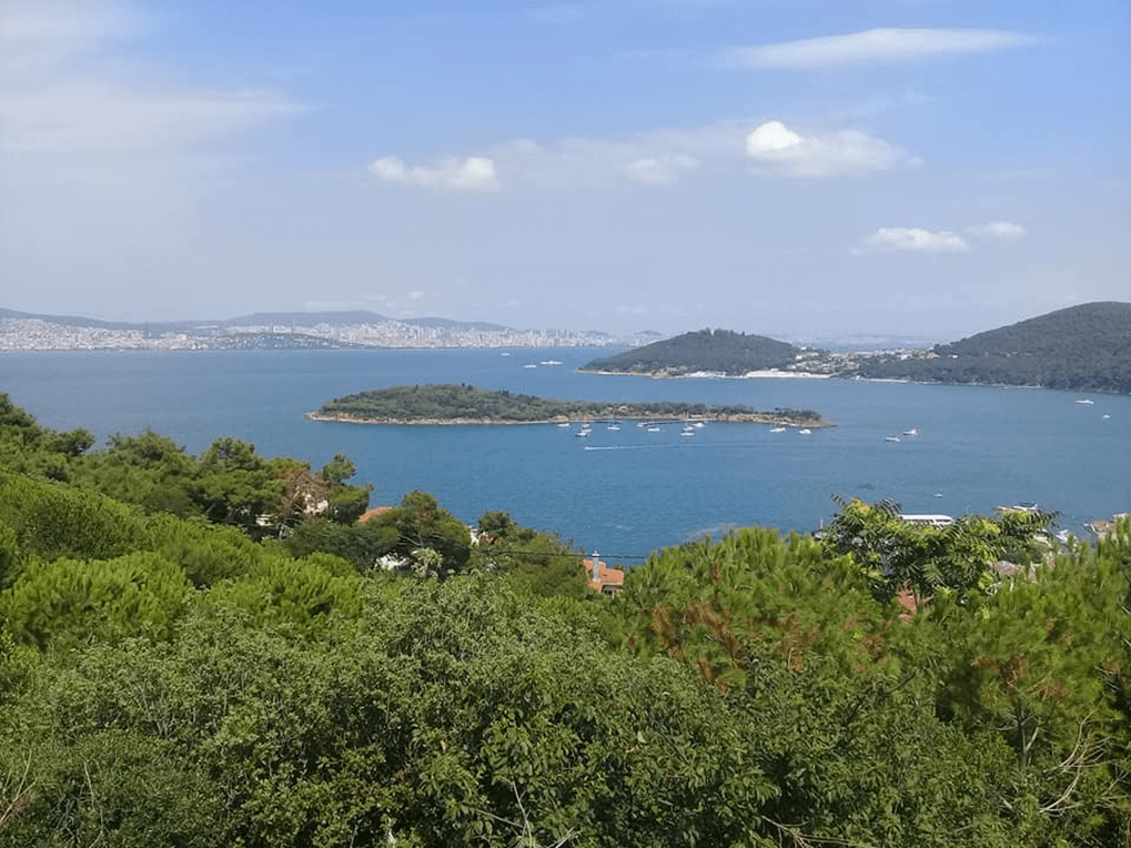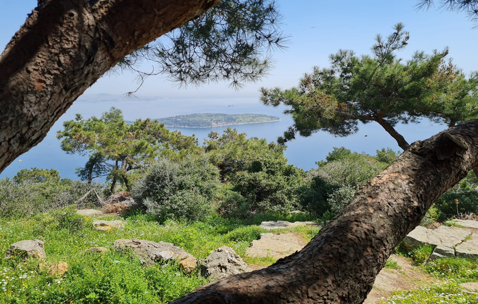 Adıyla anılan yaklaşık 100 metre yükseklikteki tepenin batı manzarası gerçekten mükemmel. Yassıada ve sivri ada siluetleri ağaçların arasından görülüyor. Gerek manastıra çıkarken gerekse manastır civarında gördüğüm bazı şeyler keyfimi kaçırmıştı. Bunun üzerine Cumhuriyetin temel çizgisini değiştirip şu anki felaket yoluna sokan ve yazının başındaki cami olayının gerçek müsebbibinin adına methiyeler düzülüp müzeler açıldığı ada silueti iyice moralimi bozdu. Yaptığım programı takip etmeden hızlı bir tur atıp bir an önce bir yerlerde gezi sonu seremonisine geçmeye karar verdim.