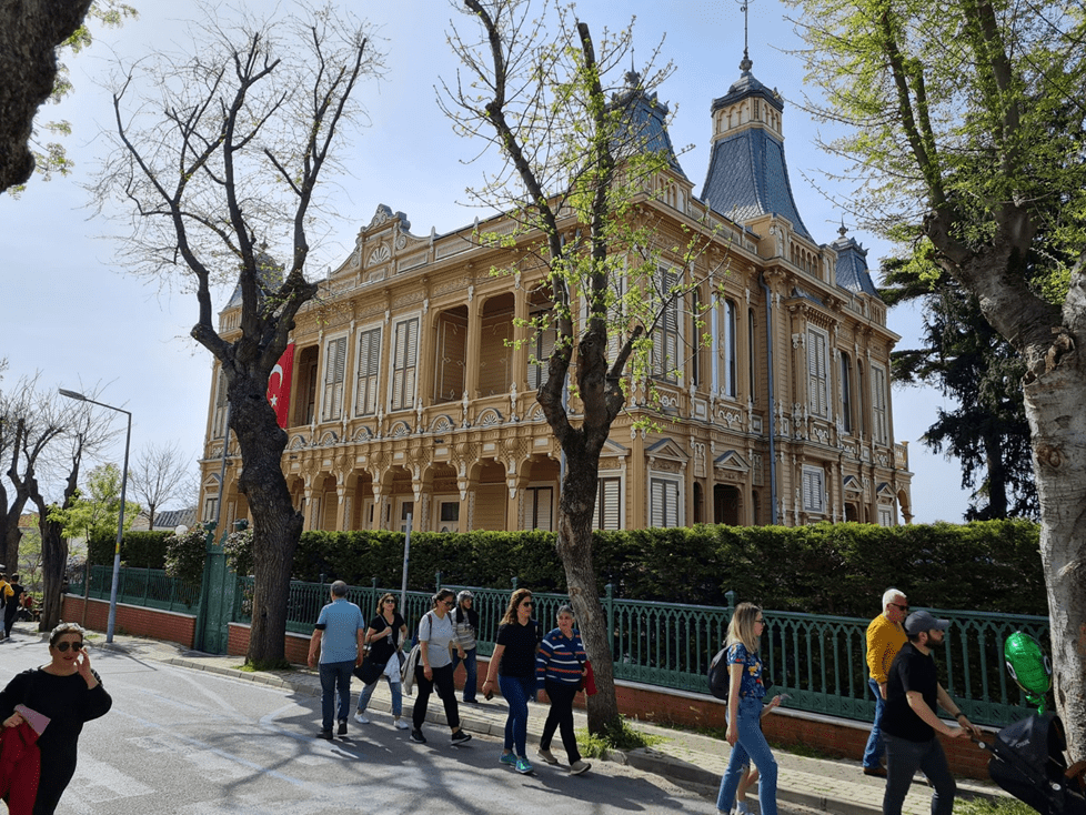 Büyükada’da vapurdan ilk gördüğünüz bu bina 1914 yılında Osmanlı Neo – Klasik tarzda yapılmış bir yapı. Mimarı Mihran Azaryan’dır. Çinileri ise Kütahyalı Mehmed Emin Efendiye ait. 1999 – 2001 yıllarında restorasyonu yapılan yapı son zamanlarda binanın ikinci katının bir vakfa kiralanması ile gündeme gelmişti.
