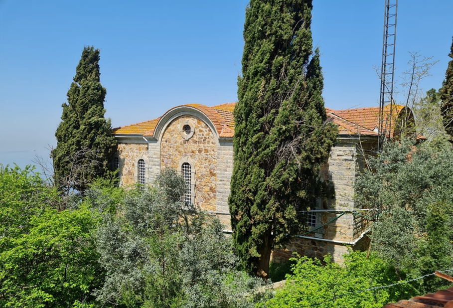 Bir Bizans manastırı olan Theokoryphotos (Hz. İsa’nın Başkalaşımı), adının da söylediği gibi, Hristos (İsa) Tepesi’nin zirvesinde yer alıyor. Bizans kaynaklarınca doğrulanmış olmamakla beraber, söylenceye göre, manastır Makedonyalı