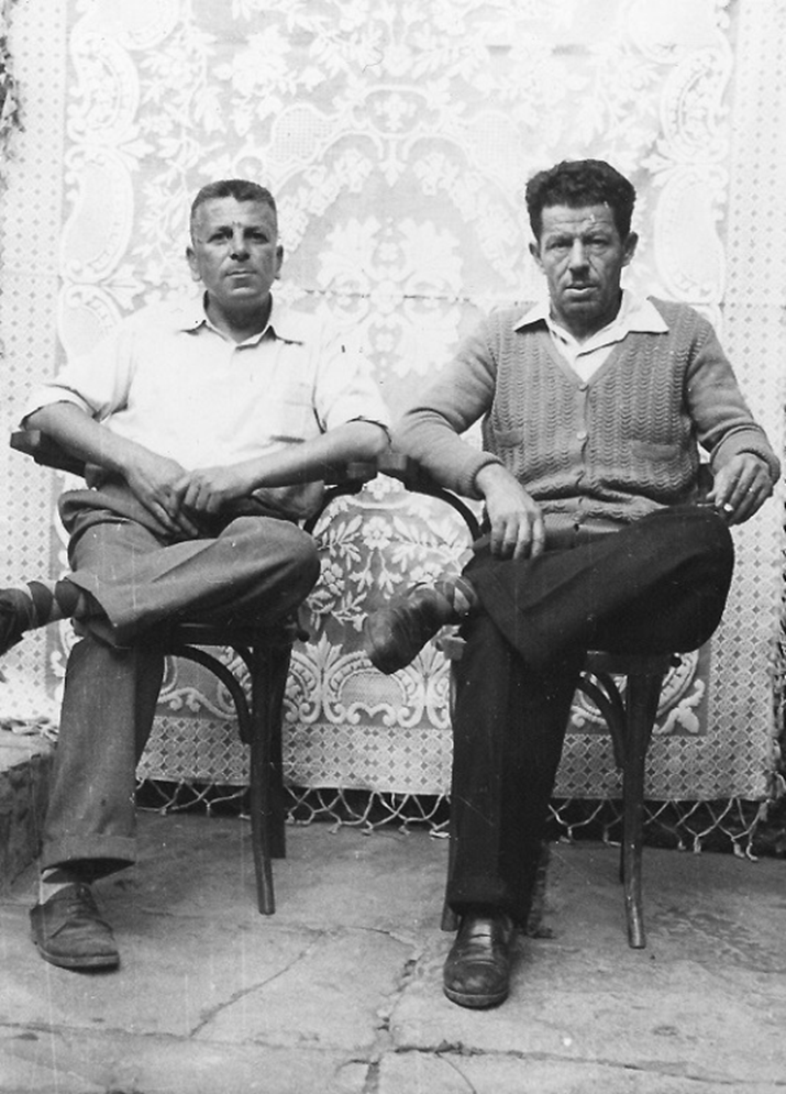 Aşağıdaki fotoğraf 1958’in yazında çekilmiş. Yüz ifadeleri sert görünüyor ama ben biliyorum ki yumuşacık yürekleri var. Yüzlerindeki o sert çizgiler zorlu yılların izleri. Arkalarındaki mavi pike hala duruyor. Düşünün çocuklukları Birinci Dünya (aynı zamanda İspanyol gribi pandemisi) ve İstiklal savaşı yıllarında geçmiş. Cumhuriyetle birlikte atılmışlar hayata. Evlenmişler ve çocuklarını ikinci dünya savaşının yokluğunda büyütmüşler. Sağ taraftaki bizim Gazozcu Baba dediğimiz dedem Hamdi Emir. Sol taraftaki ise Halamın eşi benim dede dediğim eniştem Mehmet Denizci.