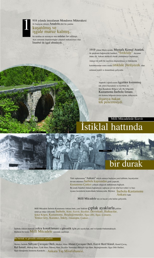Bu kez sergimizi Arkeolog Dr. Murat Karasalihoğlu ile beraber hazırladık. Konusu 100. yılını kutladığımız İnebolu’nun milli mücadeledeki rolü idi. Sergimizin adı “Bir Liman, Bir Han”. 10 panoluk Liman kısmında İnebolu’nun antik çağlardan başlayan geçmişini, 14 panoluk Han kısmında ise Ecevit Han’a Milli mücadele döneminde yolu düşen tarihi kimlikleri anlatmaya çalıştık. Liman kısmını döneme ait bazı dökümanlarla zenginleştirdik . Amacımızı anlattığımız video’yu su linkte izleyebilirsiniz.