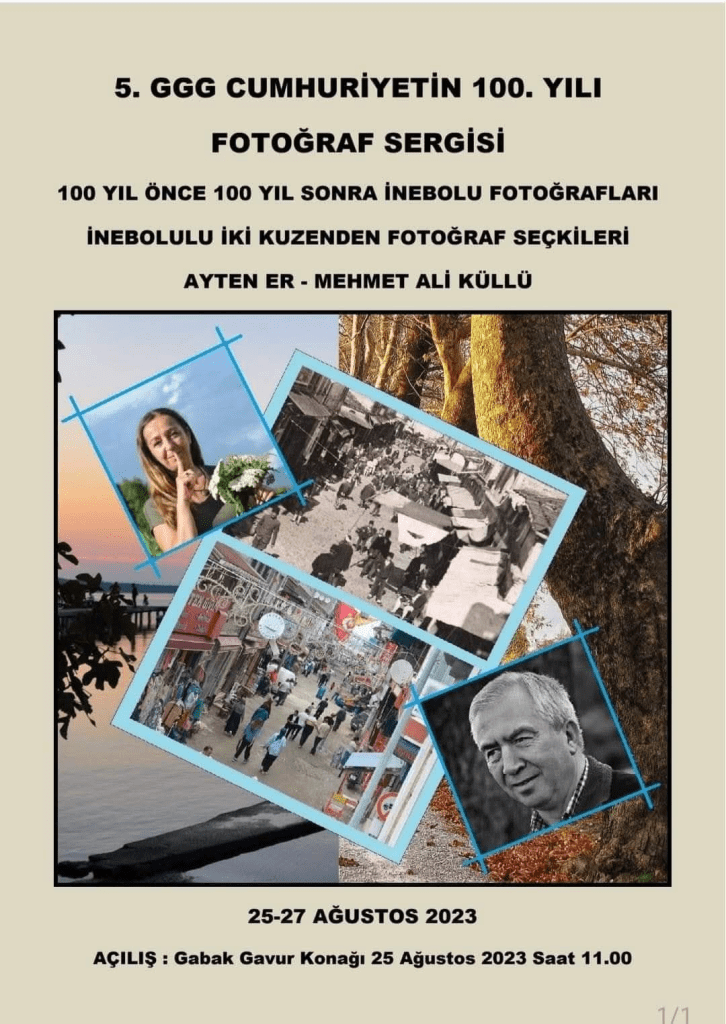 Gelelim 5. GGG Sergisine. Cumhuriyetin 100. Yılı sergisi İnebolu’nun 100 yıl önce 100 yıl sonra fotoğraflarının yanı sıra ilk defa İnebolulu iki kuzen Ayten Er ve Mehmet Ali Küllü ‘nün fotoğrafları ile zengin bir hal aldı. Buyurun…