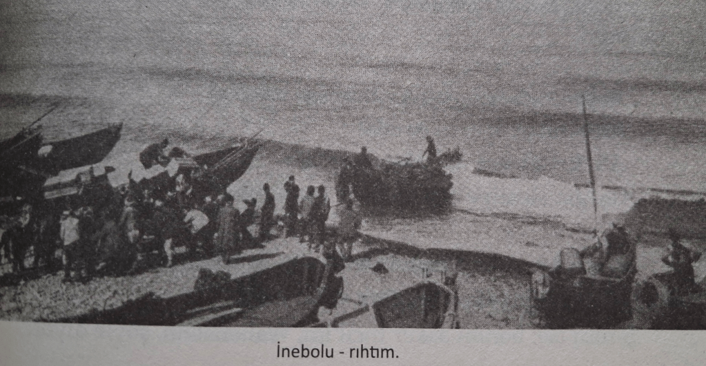 Ocak sonundan 10 marta kadar İnebolu’da kalan Tröbst kitabın 67-87 sayfaları arasında İnebolu ile ilgili gözlemlerini anlatmış. O yılları gözünüzün önünde canlandırabilmeniz için kitaptan kısa bir bölüm daha aktarayım. “Kalabalığın içinde ağır ağır dolandım. Üniformalı ve sivil subaylar, askerler, her çeşitten ve zümreden siviller, şık iskarpinler içinde resim gibi güzel ayaklarıyla tamamen örtünmüş kadınlar, hocalar ve şarkı söyler gibi seslenerek simit ve çörek satan oğlanla, her şey rengarenk birbiri içinde dalgalanıyordu. Boş alanlarda cami önlerinde rengarenk garip kıyafetleriyle kadın erkek köylü kümeleri ayakta ve çömelmiş duruyor, sırtlarında yada küçük eşeklerle getirdikleri dağdan getirdikleri odunları satıyorlardı. Gemilerle karaya ulaşan mal ve malzemeyle yüklü eşek ve katır katarları kalabalık arasından geçerek ülke içine sevk ediliyordu. Sayısız köpek ve çok güzel iri kediler sokakları dolduruyordu”