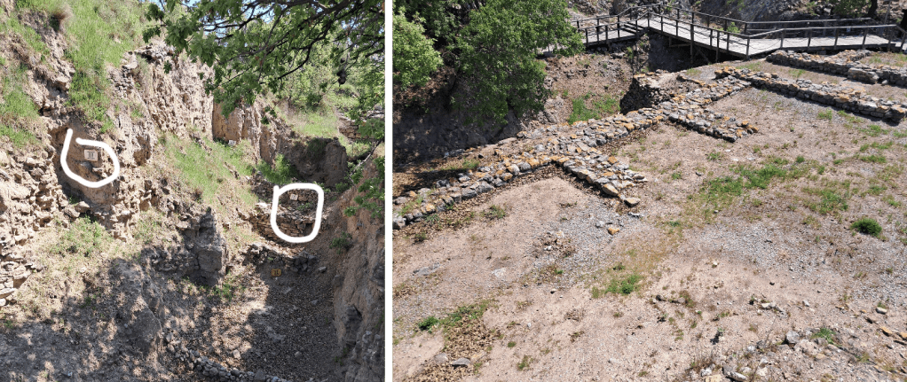 İlk fotoda 4 ve 5. katman kale surları ve kale giriş kapısı ve ikincide ise buranın 4000 yıl önceki hali.