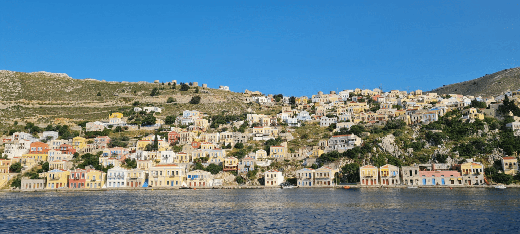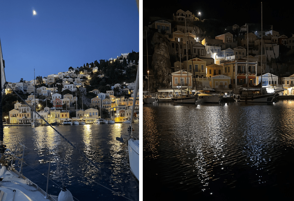 Datça’dan demir alıp yelkenle Simi’ye 3 saatte vardık. Tekne ile pasaport ve gümrük işlerini eğer orada bir aracı ile yapmazsanız oldukça fazla zaman alıyor. Bir hayli de masraflı açıkçası. Ayrıca Tilos ve Nisiros’ta gümrük olmadığından çıkış için tekrar Simi’ye gelmemiz gerektiğini de öğrendik. Böylelikle ilk dersimizi almış olduk. Adaları gezmek için oldukça sıkı bir ulaşım ağı olan Yunan Ada hatları Vapurlarını 🙂 kullanmak çok daha akıllıca bence.