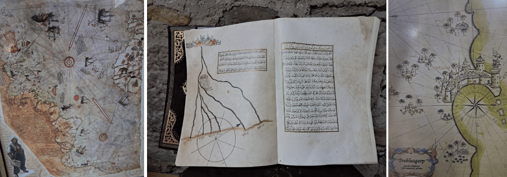 1465-1470 yıllarında Gelibolu’da doğan Piri Reis 30-35 yaşlarına kadar amcası ile birlikte Fransa ve İtalya’nın Güneyinde korsanlik yapmış. 1494 yılında dönemin padişahı II. Beyazıt’ın huzuruna çıkmış ve ondan sonra Osmanlı Donanmasın için çalışmaya başlamış. 1510 yılına kadar Akdenizlerde muhtelif seferlere katılan bir savaş kaptanı olarak görev yapmış. O dönemde daha sonra yazacağı Kitab-ı Bahriye kitabının taslağını oluşturmuş. 1511’de amcasının ölümünden sonra Gelibolu’na dönerek iki yıl boyunca haritaları ve kitabı üzerinde çalışmış. Piri Reis Müzesi görünen kulenin ikinci katı. Maalesef bilumum replikaların olduğu çok yetersiz bir müze. O nedenle müzeden pek bahsetmeden Piri Reis’i anlatmaya devam edeyim.