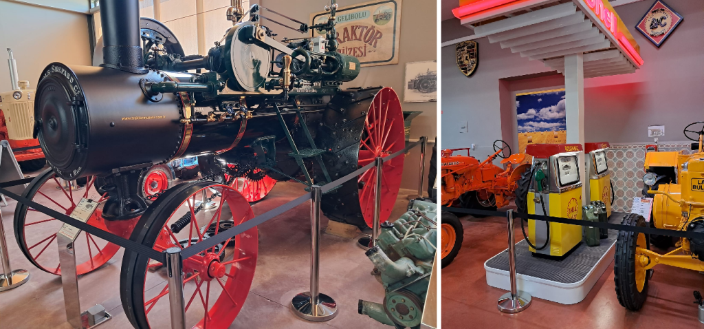 Müzeye girerken pek fazla beklentim yoktu açıkçası. Girişin 50 TL olduğunu öğrenince iyice keyfim kaçtı. Ama Avrupa’da 2021 yılının en iyi düzenlenmiş Özel Müzesi ödülünü kazanmış olduğunu bildiğim için başladığım işi bitireyim dedim. Eski bir sardalya fabrikasının yerine yapılan bu müze itiraf etmeliyim ki bende Koç Müzesine benzer bir memnuniyet yaşattı. Önce Traktör Müzesini yıldızı olan 1884 ABD yapımı dünyanın ilki olan bu buharlı traktör ile başlayalım. Elbette çocukluğumuzun benzin pompalarının heyecanı ile devam edelim.
