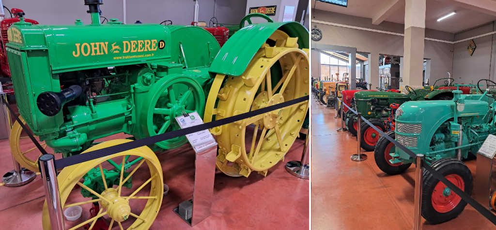 Her bir traktörün yanındaki imalatı yapan ülke ve firma bilgisi, model, güç ve imalat yılı ile çalıştığı bölge bilgilerini içeren basit etiketler var. Bu bilgiyi yoğun olarak vermekten çok daha etkileyici bence. Traktör teknolojisinin 80 yıllık gelişimini izleyebiliyorsunuz. Her biri temizlenip boyanmış rengarenk traktörler müzeyi gezenleri çocuksu ve neşeli bir ortama çekiyor sanki.