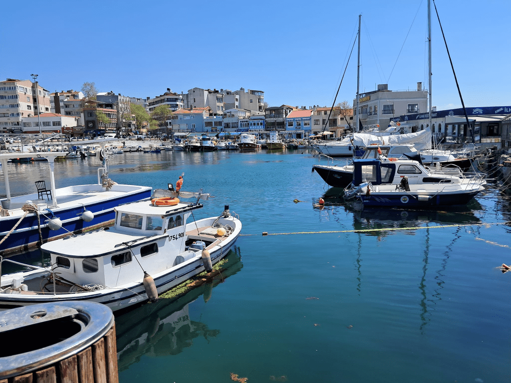 Çıktığımda liman içindeki teknelerin arkasındaki sıra sıra meyhaneler bana göz kırpsa da benim işim gücüm var kardeşim.