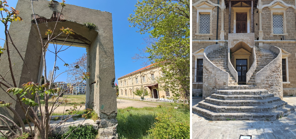 Mevlevihanenin günümüzde kalan iki büyük taç kapı ( Fotoğrafta yakın kapının içinden diğerini görebilirsiniz) ve aralarındaki oldukça geniş bahçenin yanındaki semahane geçmişte ne denli görkemli bir yer olduğunun göstergesi.