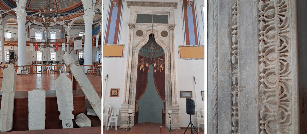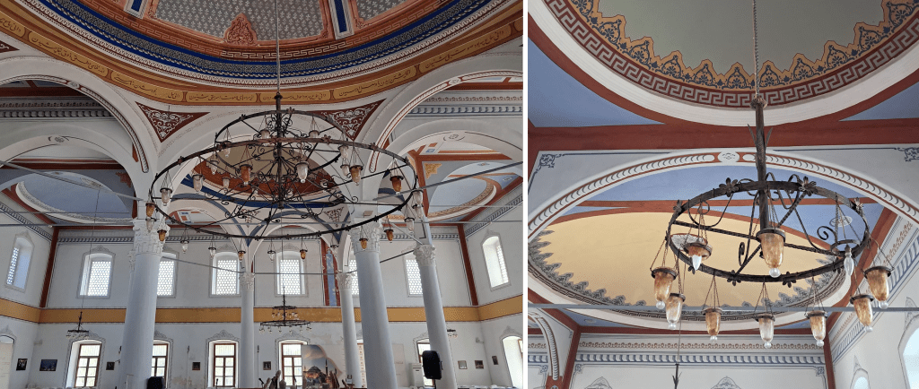 İç mekân, kalem işi bitkisel motifler ve hat eserleriyle süslenmiş. Etkilendim.