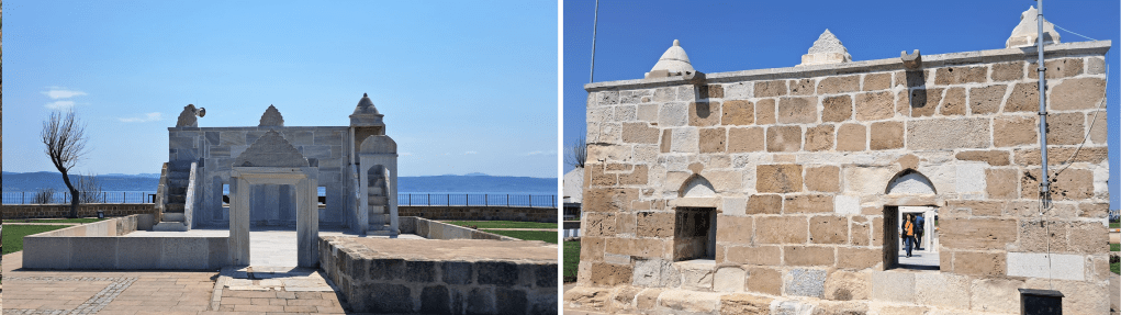 Yukarıda dediğime ilave olarak şunu da belirteyim; bazıları da sekiz köşeli 10 metre yüksekliğinde anıtsal bir yapıya karısı ile birlikte gömülür. Hamzakoy’a bakan bir tepe üzerindeki bu türbe Osmanlı Donanmasına 3 yıl Kaptan-ı Derya’lık yapan Sinan Paşaya ait. Gelibolu’da tersaneler kurdurup şehrin gelişmesine önemli katkılar sağladığı için türbesi buraya yapılmış.