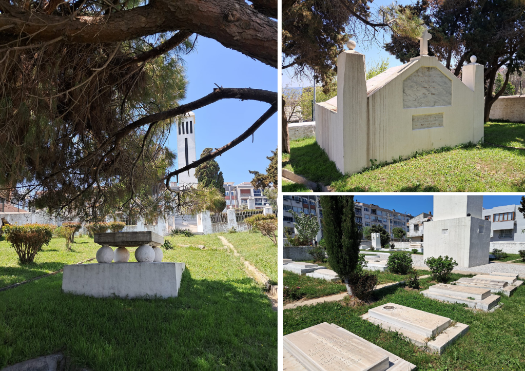 Oldukça bakımlı olan bahçesinde kademe kademe mermer mezarlar bulunmakta. Bunlar genelde Fransız ya da bu savaşa birlikte katılmış başka uluslara ait general ve yüksek rütbeli subaylara aitmiş.
