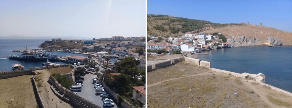 Kalenin en yüksek surlarına çıkıp doğuya baktığınızda Bozcaada kent merkezinin eski Türk bölgesini ve limanı görebilirsiniz. Batı tarafında ise en uçta gördüğünün sarı bina olan salhaneyi, adanın en yüksek noktası olan 192 metrelik Göztepe’nin denize inen sırtındaki yel değirmenlerini ve eski Rum Bölgesi’nin bir kısmını görebilirsiniz.