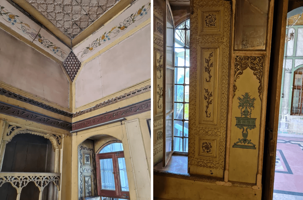 Tavan, bordür ve köşe detayları günümüzün kartonpiyercilerine saç baş yoldurur. Fazla lafa gerek yok aslında. Hala sahibi yurtdışında yaşayan bir Ermeni kadınmış. Konağın orta avlusunda çayhane işletenlerin buraya çökmüş olma ihtimali yüksek.