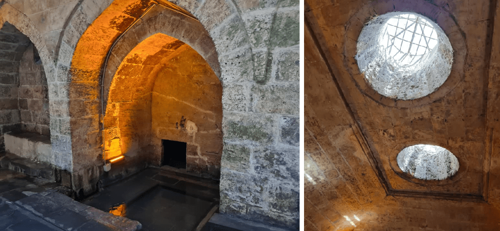 Burası ise kastelin çimeceklik denilen hamamı. Yani, entebin hememi. Yeraltında olduğu için aydınlatma da unutulmamış.